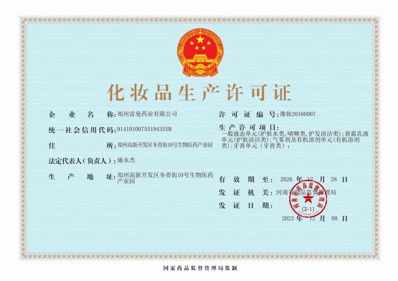 化妝品生產(chǎn)企業(yè)GMP證書(shū)